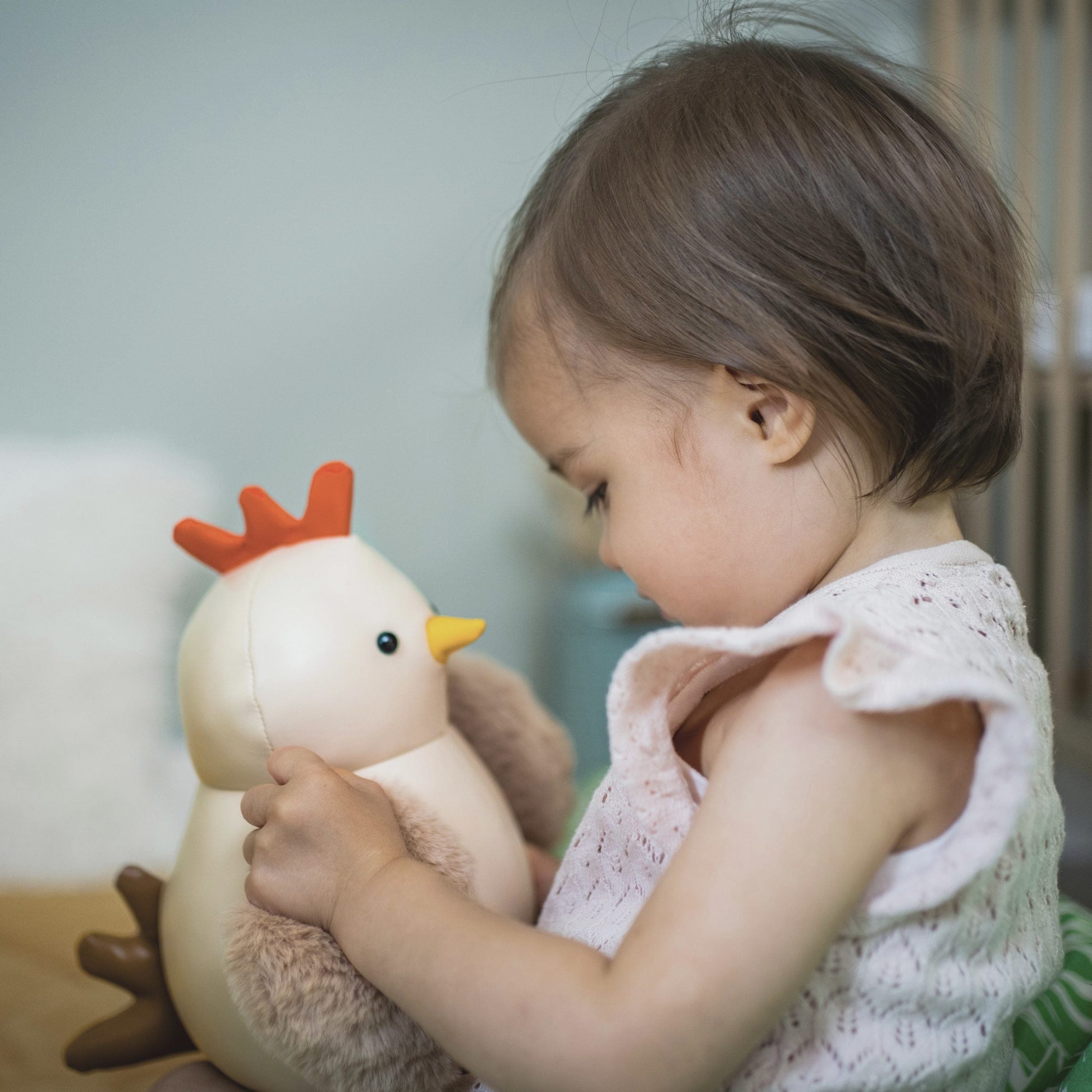 PVP referencial: $32,990Paulina la gallina es un adorable peluche musical, agradable de manejar gracias a su textura flexible y su bonita forma redondeada.
