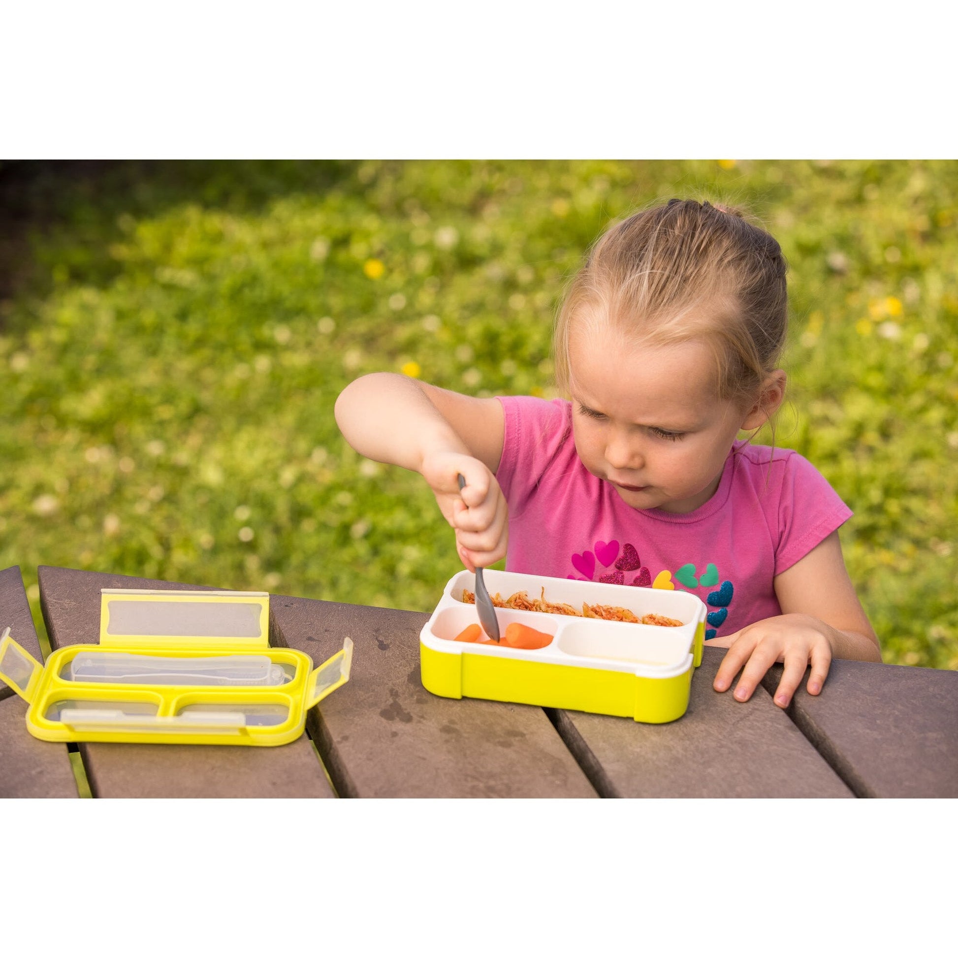 Los compartimentos porcionados son ideales para guardar una comida completa vayas donde vayas.