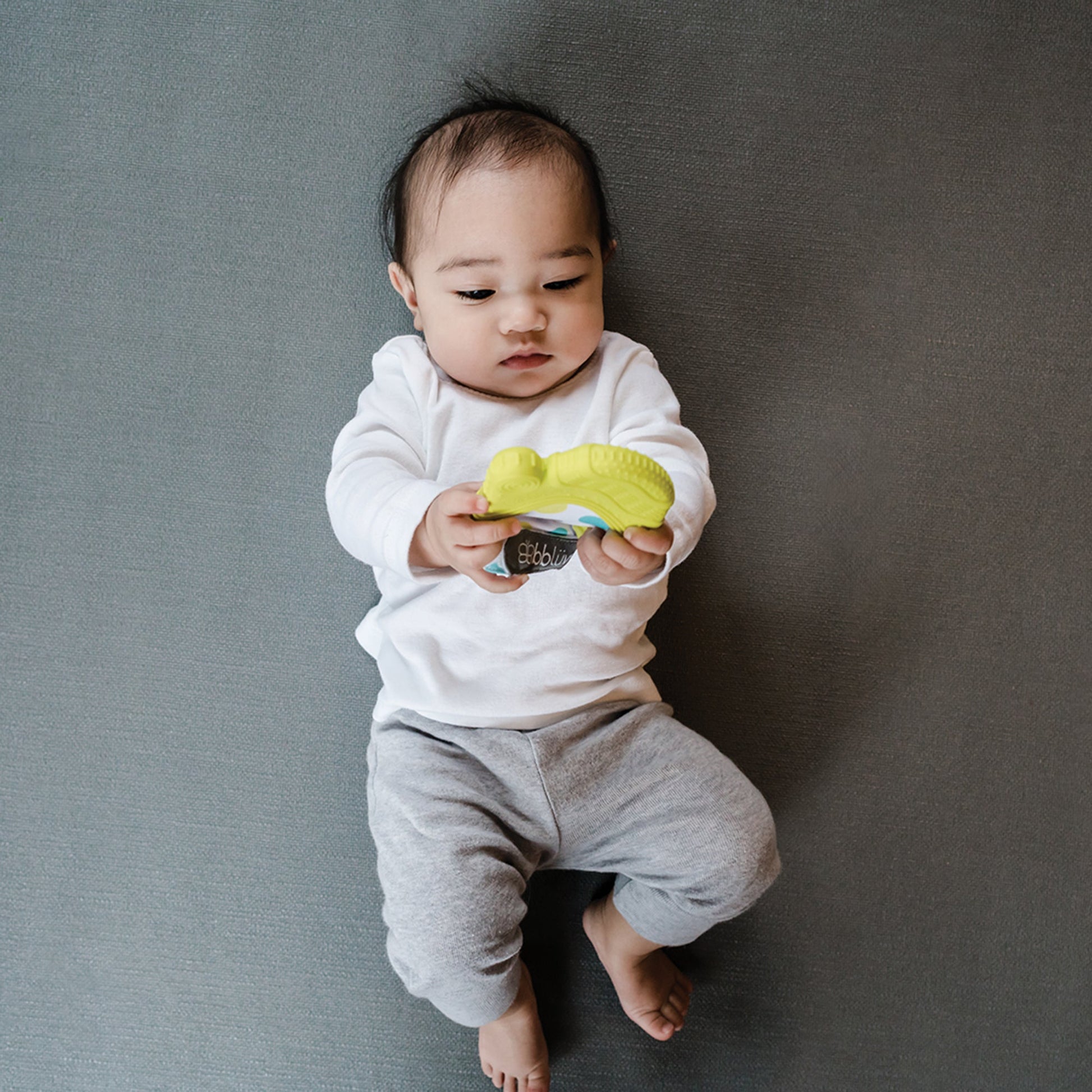 Su bebé puede calmarse del dolor de la dentición mientras evita la inevitable caída del juguete de dentición habitual.