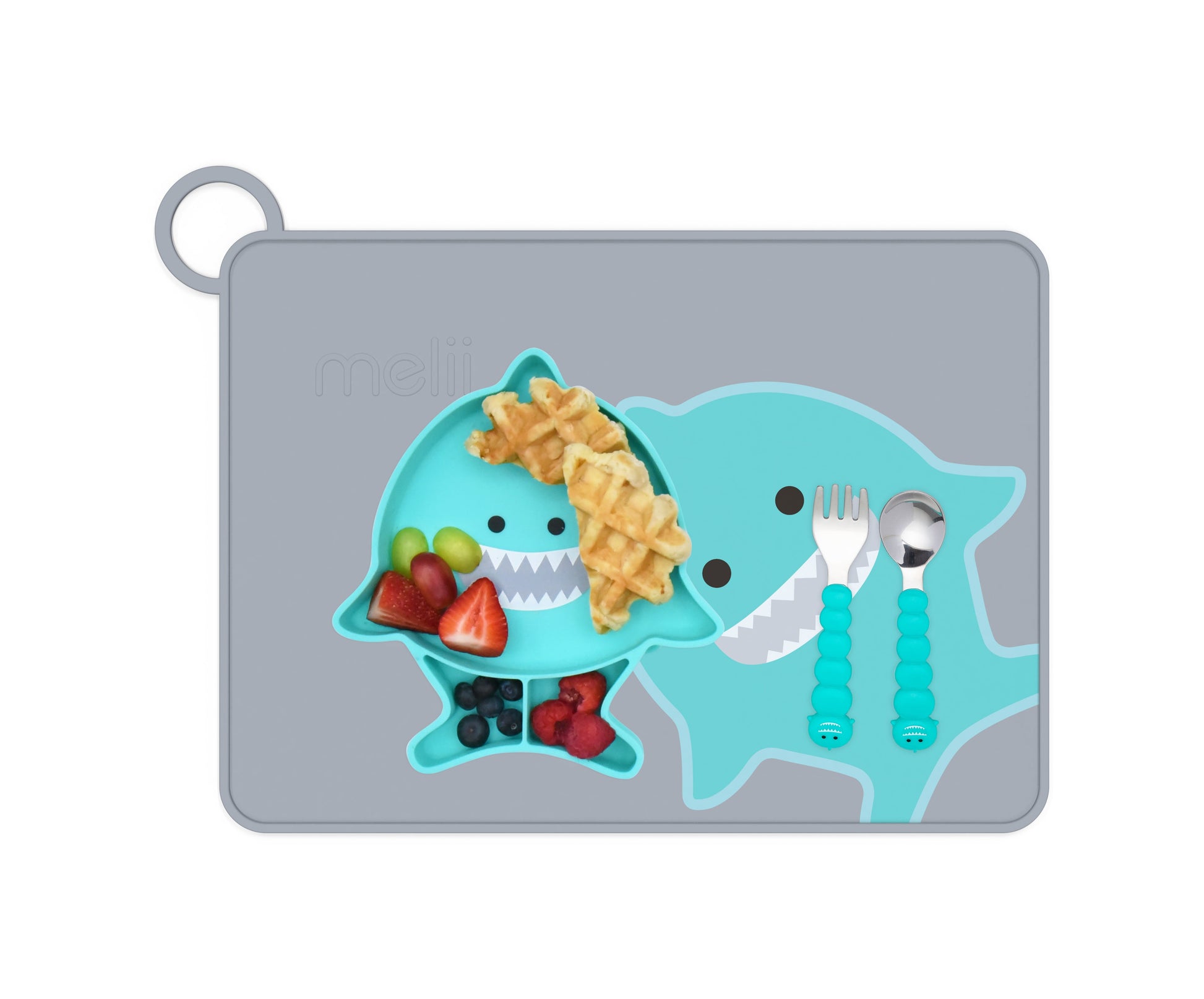 El Individual 100% de silicona de grado alimenticio viene con borde elevado y un bucle integrado para mantenerlo doblado y en orden.