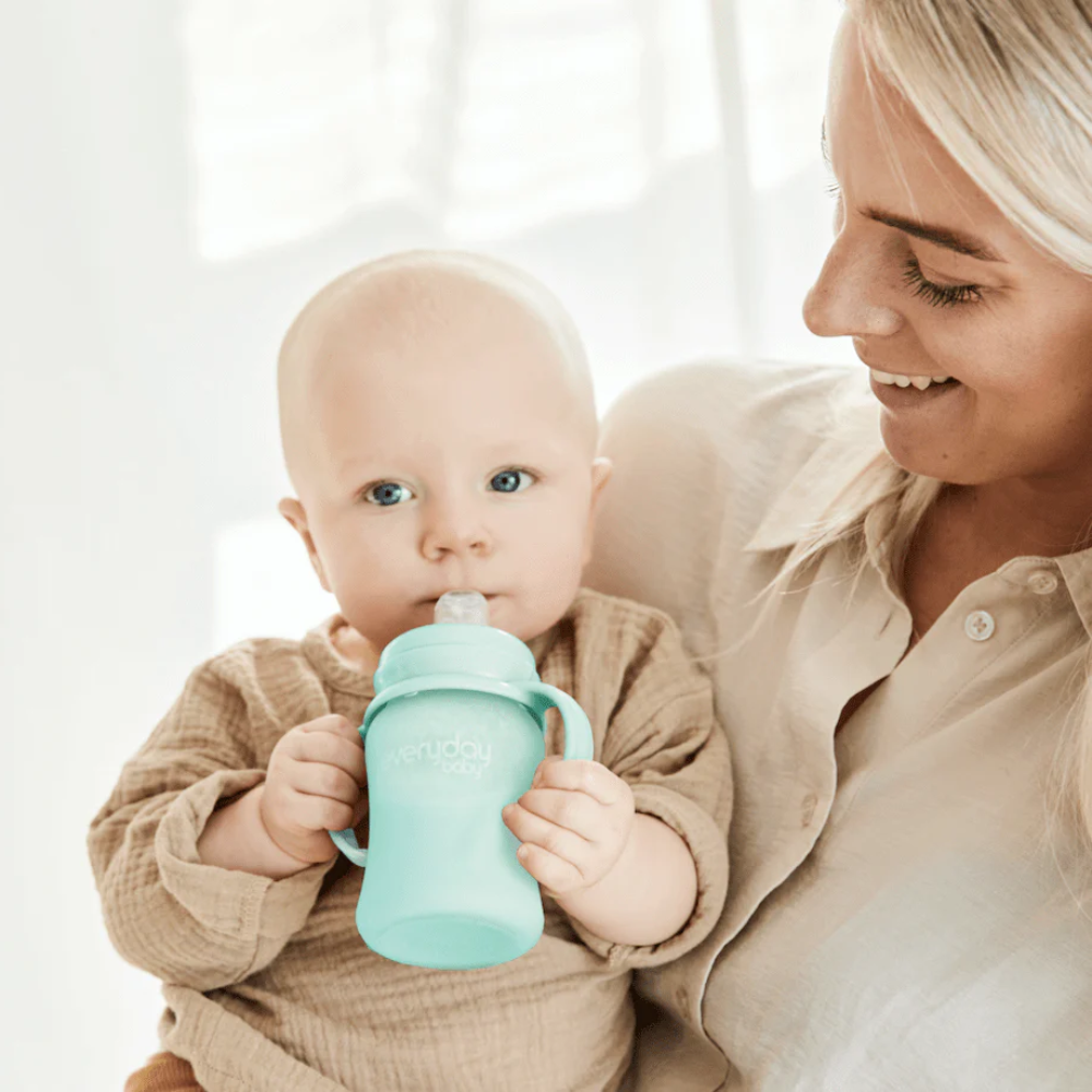 Las asas se adaptan a todas las mamaderas de la marca Everyday Baby, así como a la mayoría de las de cuello ancho del mercado, y los transforman en un vaso en un instante.