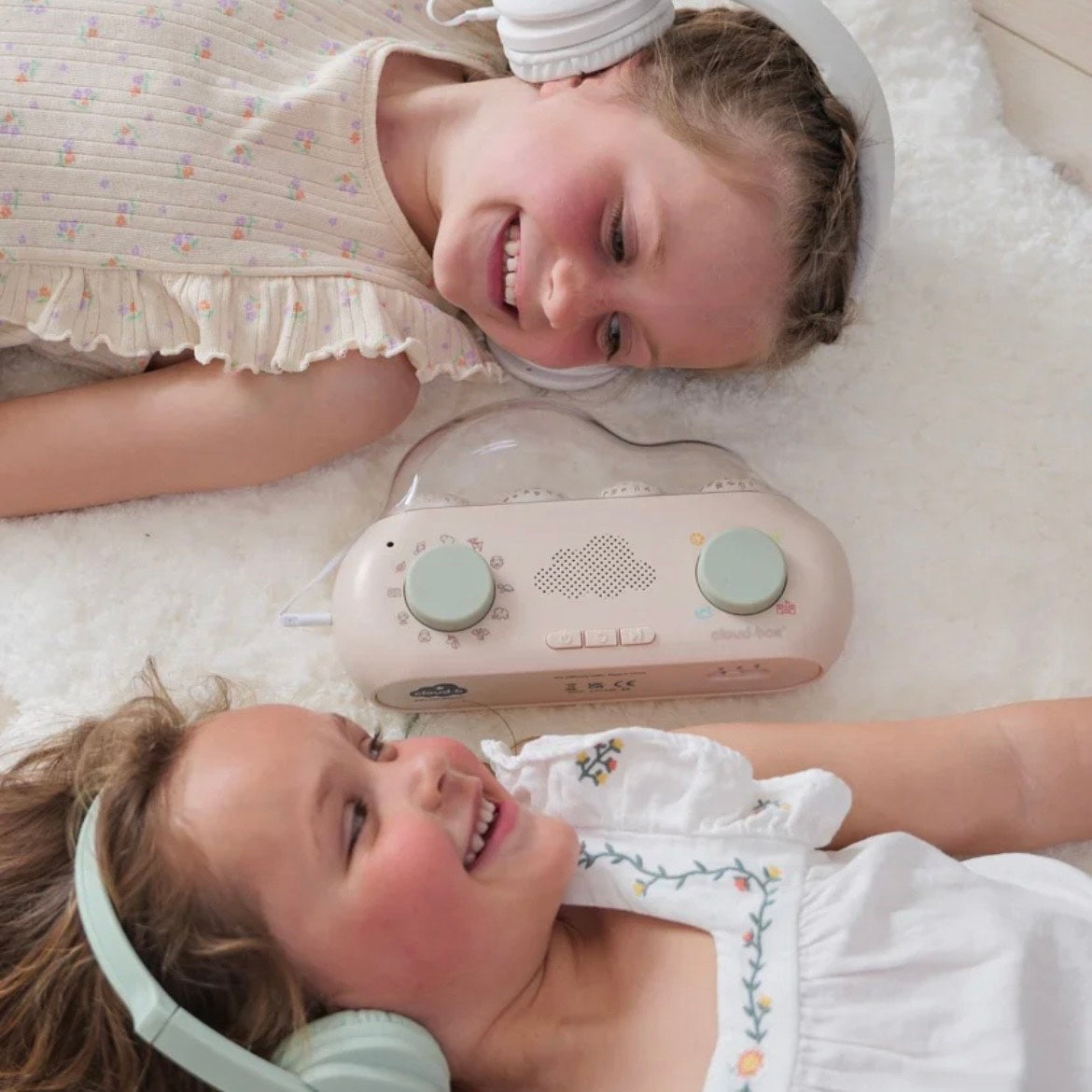 Interactivo sin necesidad de pantalla, CloudBox favorece el amor por los cuentos de los niños y niñas a la vez que reduce el "tiempo frente a la pantalla." Conecta los auriculares al enchufe situado en el lado izquierdo de CloudBox para disfrutar de una experiencia de audio totalmente envolvente (auriculares no incluidos).