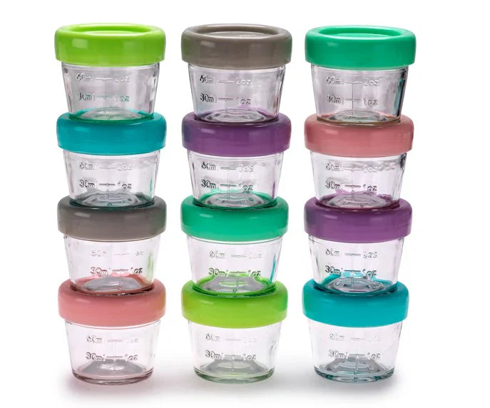 Las tapas herméticas y a prueba de fugas con sello de silicona mantienen la frescura, evitan quemaduras en el congelador y evitan que los recipientes de vidrio se derramen y ensucien su bolsa de pañales o lonchera.