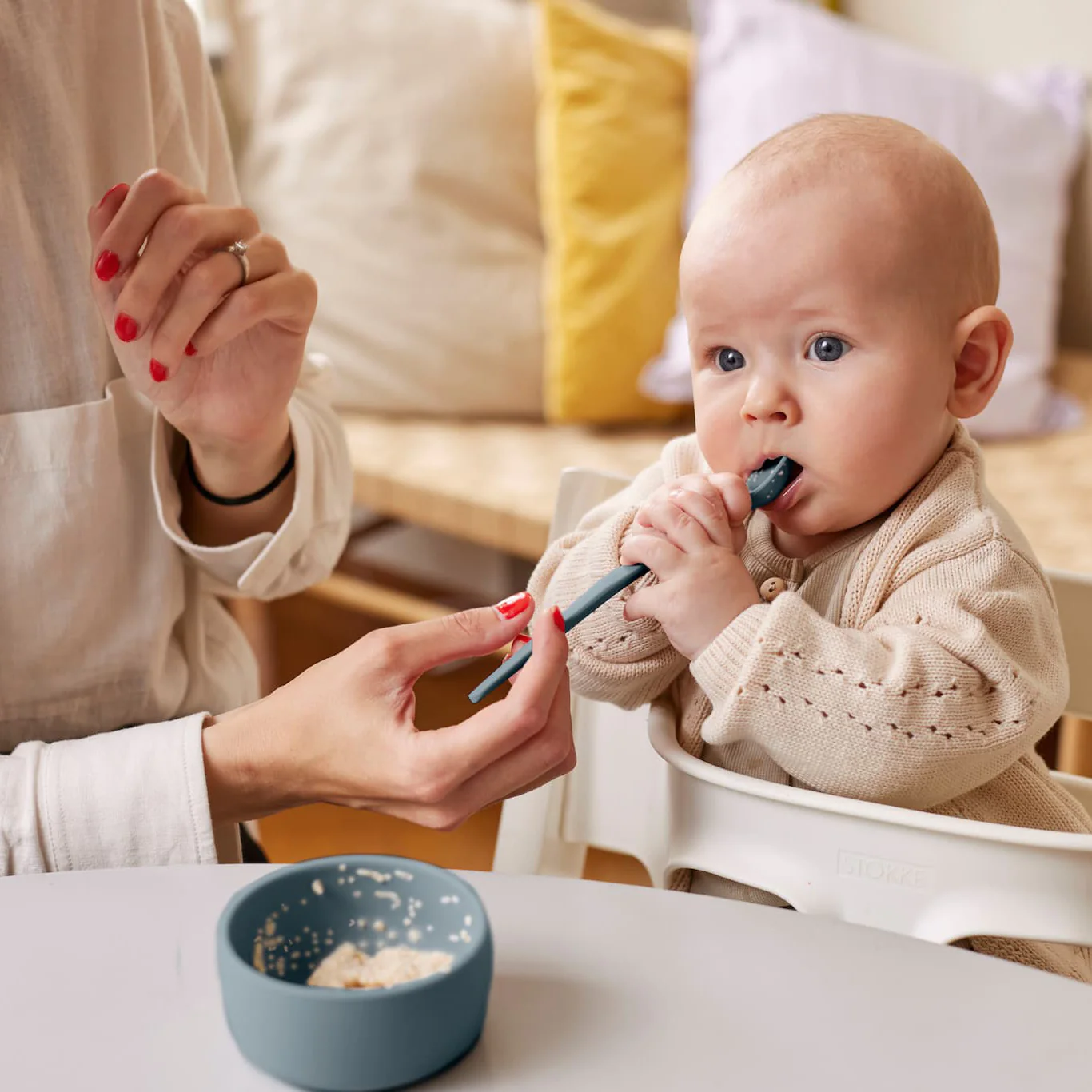 La suave superficie de silicona está especialmente diseñada para proteger la boca y las encías sensibles de tu bebé, al mismo tiempo que se mantiene estable gracias al núcleo de metal. Su diseño bien pensado proporciona un agarre firme mientras alimentas a tu hijo.
