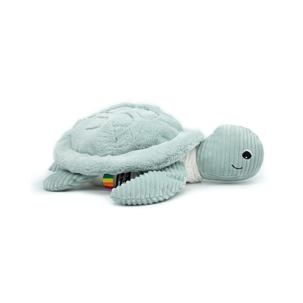 El peluche tortuga gigante verde menta de 50 cm está fabricado en cotelé y es suave para que puedas contarle todos tus secretos y quedarte dormido sobre su mullido caparazón.