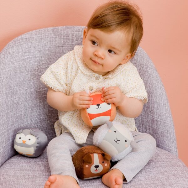 PVP referencial: $19,990El set de 4 peluches del bosque incluye un mapache, un zorro, un ciervo y un búho que acompañan al bebé en sus juegos.
