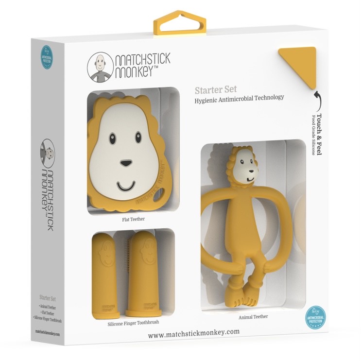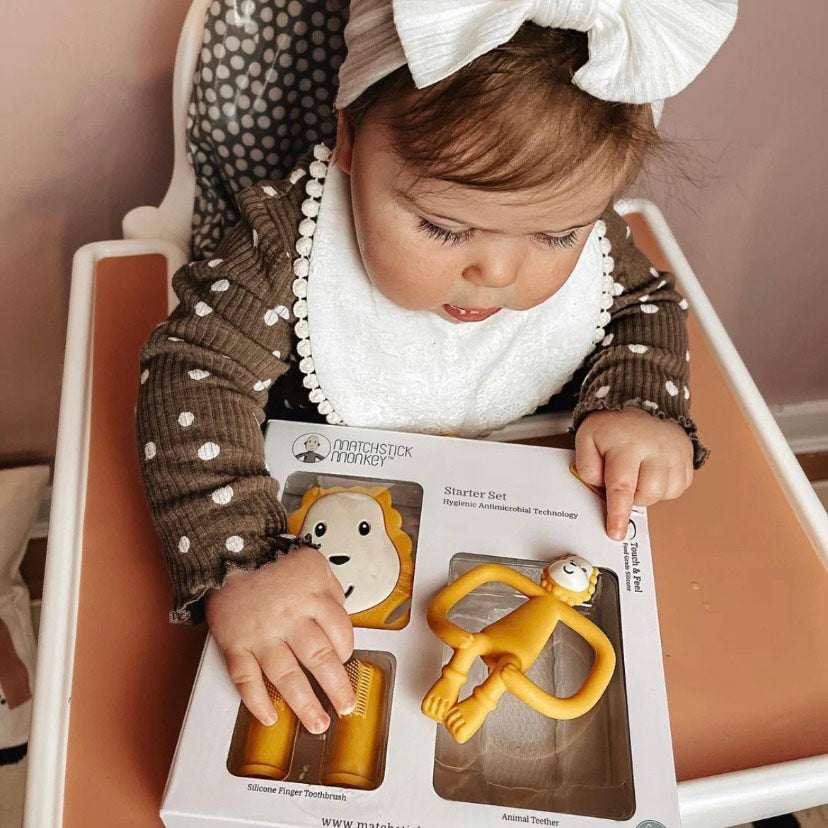 En Matchstick Monkey, diseñamos productos que ayudan a guiar a su bebé a través de las etapas claves de desarrollo de la dentición.